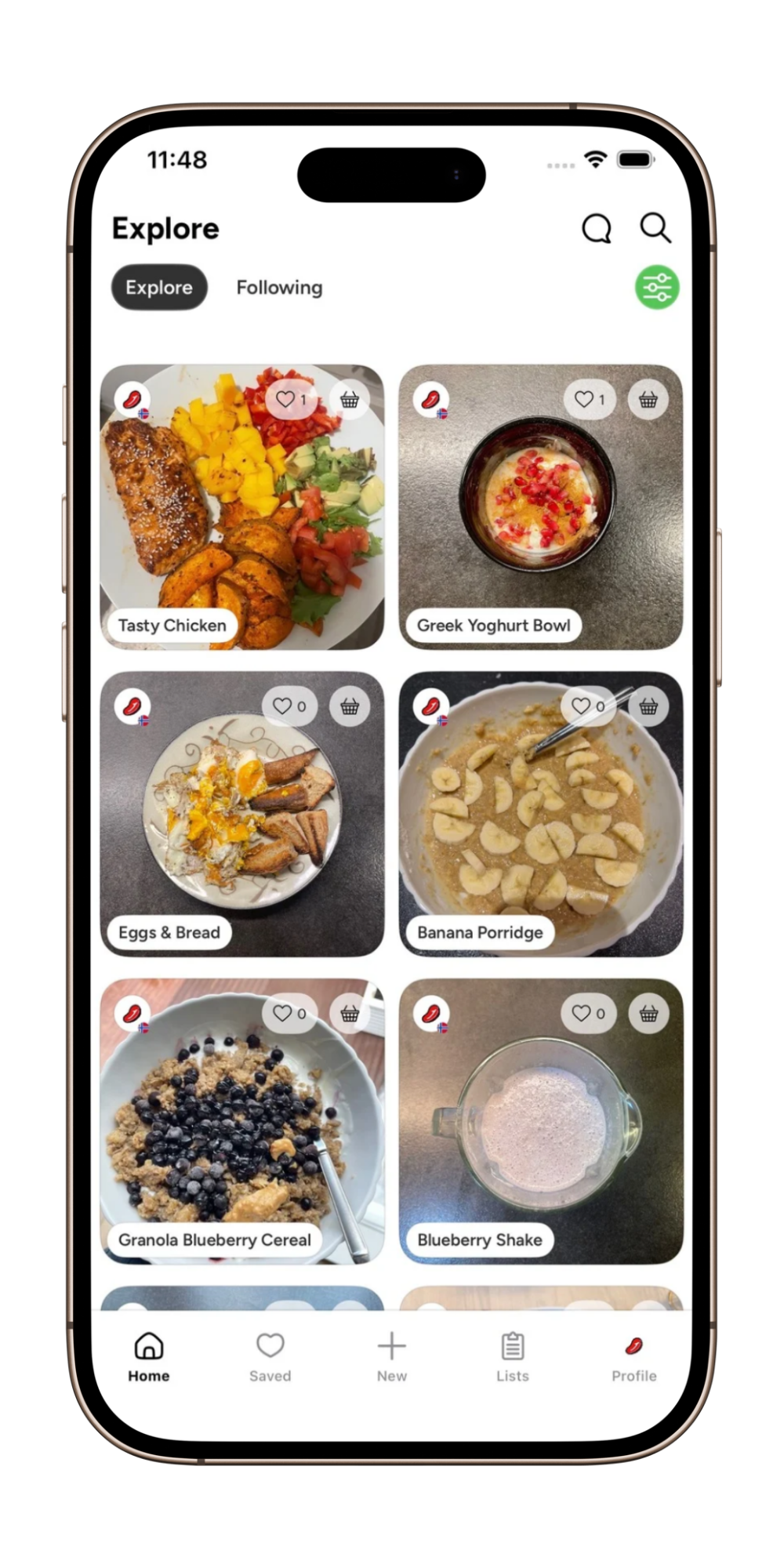 Explore all user-shared meals, with filtering integration 🔥